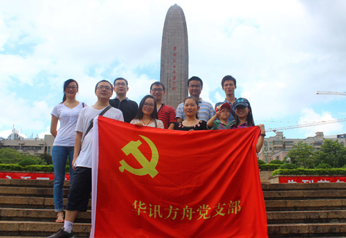 9月13日,為表達對革命烈士的哀思之情,華訊黨支部特組織了公司10多名黨員群眾開展“紀念先烈,永葆先進”紅色教育活動?! 』顒拥谝徽臼窃谀项^古城。古樸的牌